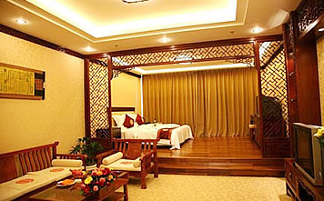 酒店一期共拥有80间超豪华风景客房,包括57套山景房、5套海景房、17套豪华蜜月房和一套皇帝套房。所有房间都配备了数字高清电视,电脑宽带上网,国内国际直拔电话,国际卫星电视频道,中央空调,仿古家具等豪华设施,房间装饰采用了木雕工艺,极具名族特色。房间内使用清洁用水均来自苍山的天然泉水,纯净得可以直接饮用。