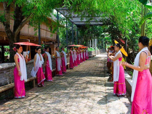 傣族园,全称西双版纳傣族园。位于中国云南省西双版纳橄榄坝。景区内有我国保存最完好的五个傣族自然村寨,占地面积3.36平方公里,预计投资1.5亿元人民币,分三期完成。第一期投资4200万元,已完成土地征用,道路修建,旅游购物区地下水管、电线的埋设等基础设施建设,建成了旅游景区大门楼、迎宾广场、老景区的包装、村寨旅游线路、江边活动区、旅游购物区、烧烤场、泼水广场、大型露天剧场 。已于1999年8月1日开门迎客。傣族园二期工程预计投资6000万元,将建成民俗旅游度假区,大型游乐园。