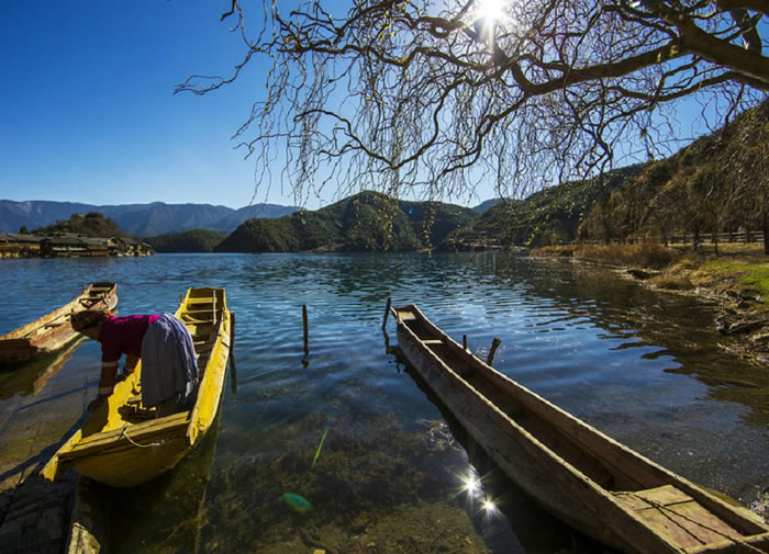 景区特色:猪槽船,成全了多少谈情说爱,接交“阿肖”的摩梭伴侣。转海时,在船头燃起青松枝叶,一缕缕青烟随着缓行的独木舟飘散;人坐船上.以舟代步,绕湖而游;猪槽船中,不以日出为早.不以日落为迟,周围的一切静悄悄,令人疑在“不知有汉,无论魏晋”的桃花源里,潇洒和浪漫到忘却了时间,忘却了自己。