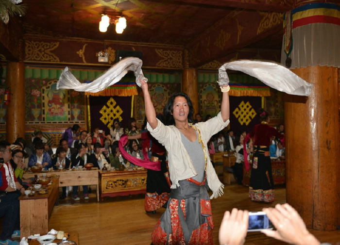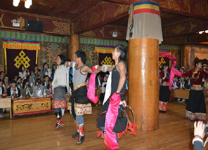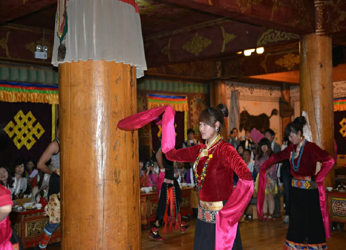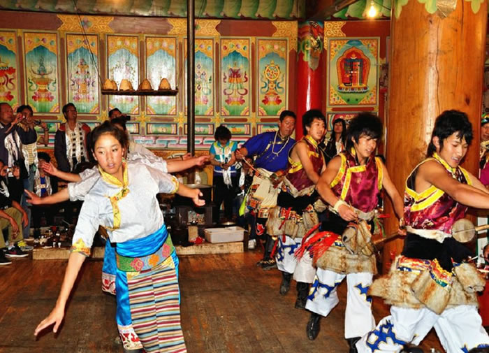 迪庆藏族歌舞种类繁多,最具代表性的是建塘镇锅庄舞、尼西情舞、塔城热巴、德钦弦子舞等等。这些都是迪庆香格里拉藏民家访中的传统表演节目。游客在藏民家访时,可以即兴与当地的村民一共表演互动文艺节目。