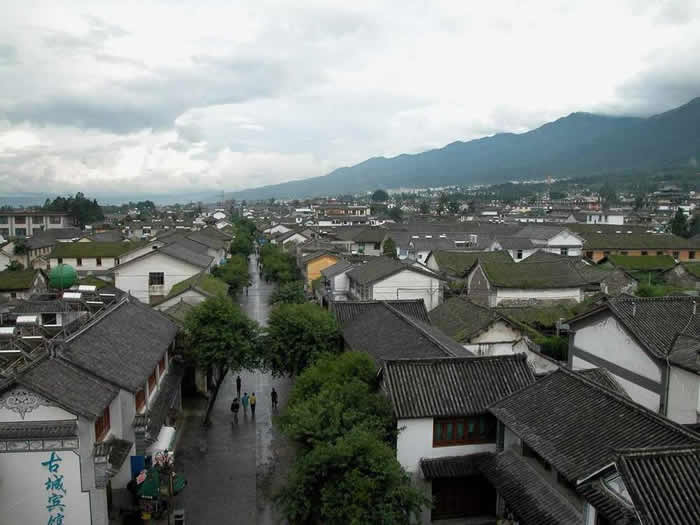 城内由南到北,一条大街横贯其中,深街幽巷,由西到东纵横交错,全城清一色的清瓦屋面,鹅卵石堆砌的墙壁,显示着大理的古朴、别致。