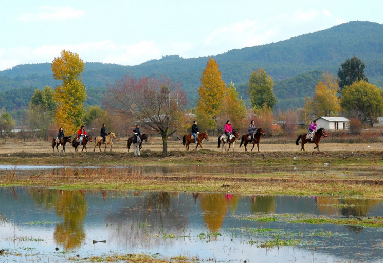 拉市海位于丽江县城西面10公里处的拉市坝中部,是云南省第一个以“湿地”命名的自然保护区。“拉市”为古纳西语译名,“拉”为荒坝,“市”为新,意为新的荒坝。拉市海原为滇西北古地槽的一部分,中生代燕山运动时褶皱隆起成陆,至中新世成为一个准平原,随着横断山脉造山运动的发展,到上新世末至更新世初,这个准平原又分割成三个相对高差在100米至200米的高原山间盆地 ,即拉市坝、丽江坝、七河坝。拉市坝是其中最高的坝子,坝中至今仍有一片水域,便称拉市海,湖面海拔2437米。