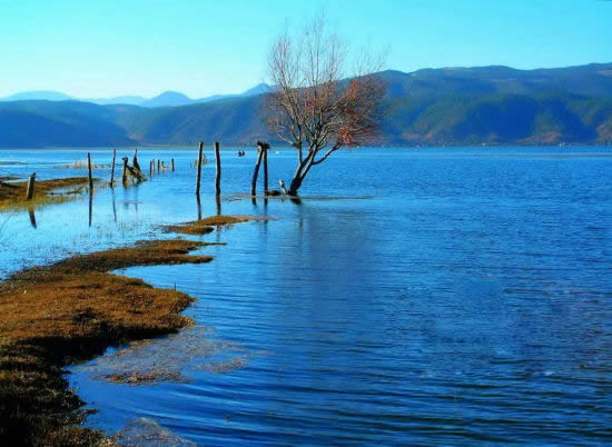 拉市海水草肥美、湖色优美,被誉为生命的摇篮,是美国大自然保护协会基地,拉市海实为断层构造湖,同时又受石灰岩溶蚀构造作用而成。入湖地表水源有南侧的清水河和北侧的美泉河。水文汇水面积265.6平方公里,湖水原从西北侧的溶洞泄出。过去,湖面季节变化显著,雨季水位高,最大蓄水量1.8亿立方米,水面9平方公里,水深可达9米;干季水位下降,甚至干涸。80年代以来,先后兴修水利,在落水洞前筑起了一个高大的堤坝,海水再也无法随意流去,而是从海东黄山哨打通的输水隧道,流入丽江城区。由于修建水坝,拉市海由季节湖变成了保持一定水位的高原湖泊,如镜的湖面倒映着玉龙雪山,越冬水鸟安然栖息,或翱翔于蓝天白云之间,构成高原湿地特有的气息。