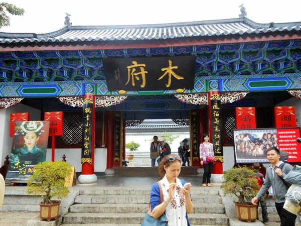 “北有故宫,南有木府”。跨过清泉汩汩的流水小桥,突见一座木牌坊赫然立于土木瓦顶居民之间。跨进朱红色的木府大门,眼前豁然开朗,一片开阔的地面上巍然耸立一座金辉煌的宫殿,汉白玉基座雕刻精美,那恢宏的气势,使人恍若置身于皇宫之内。如果说在丽江古城我们看到的是丽江世俗生活的一面的话,那么在木府,我们将翻阅到一个在西南地区曾经辉煌一时的大土司家族的兴衰史。