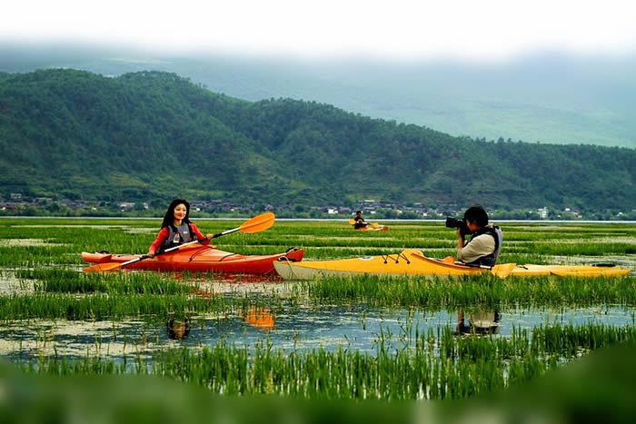 中餐后乘车前往丽江,游览丽江高原湖泊候鸟天堂-【拉市海湿地公园】(30分钟左右)(拉市海国际湿地公园,拉市海国际湿地公园是云南第一个以“湿地”命名的高原湿地自然保护区,这里不仅是植被的海洋,同样也是候鸟的天堂,各种湿地鸟类栖息于此,在这里能体验茶马古道的马帮风情,感受徜徉于芦苇柳林之中,游离于山水之间,飘渺于云际之外的湿地景观魅力)【赠送骑马划船体验】,之后游览丽江古城(自由游览),游览国家AAAA级旅游区、国家历史文化名城、世界文化遗产、全国文明风景旅游区---【丽江古城、四方街】,古城自用晚餐。赠送价值260元/人【丽水金沙】大型歌舞,以舞蹈诗画的形式,荟萃了丽江奇山异水孕育的独特的滇西北高原民族文化气象、亘古绝丽的古纳西王国的文化宝藏,择取丽江各民族最具代表性的文化意象,以水,山 情,全方位地展现了丽江独特而博大的民族文化。后入住酒店